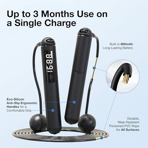 - Adjustable rope length up to 118.11 inches (3 m) to fit different heights and jumping styles for optimal performance.
