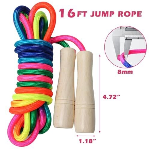 Double Dutch 16Ft Rainbow Jump Rope with Wooden Handles for Groups