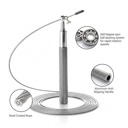 - Equipped with a 360° swivel ball bearing for fast, fluid skipping and easy mastery of double unders and quick rhythmic jumps.