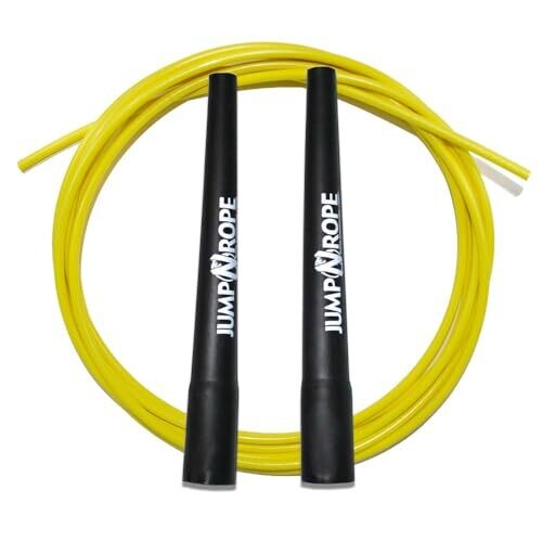 A high-performance jump rope with lightweight, tapered handles for precision and control. Cushioned with flexy material, it reduces fatigue during reps. Thick stainless steel wire offers durability and adjustable length with secure knots. Ideal for beginners and pros; USA-made, yellow for visibility.