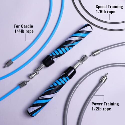 - Achieve your weight loss and fitness goals faster with a versatile 3-in-1 weighted jump rope system that includes 1/6lb, 1/4lb, and 1/2lb ropes for beginner, intermediate, and advanced training.