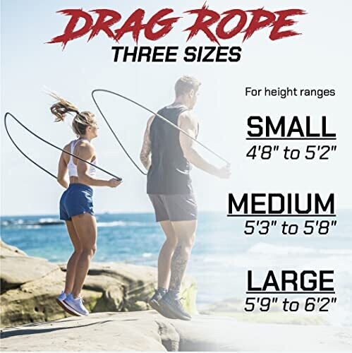 Rx Smart Gear Drag Jump Rope with Non-Slip Handles for Cardio Conditioning