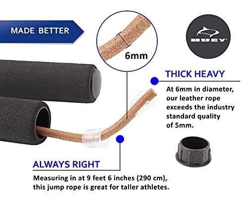 Huey Sport Leather Jump Rope – Adjustable, Quiet Training for Boxing