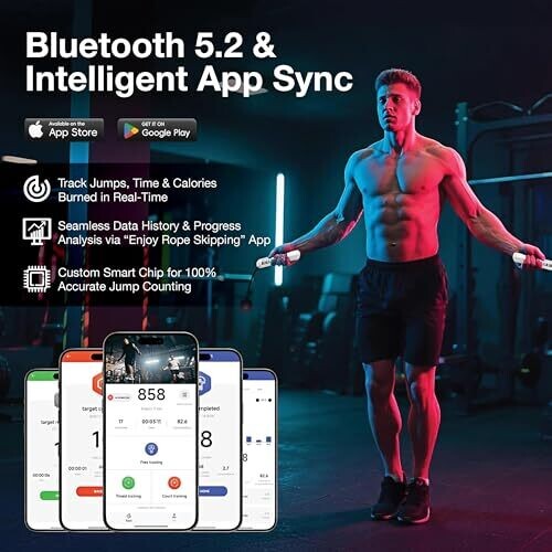 - Experience seamless connectivity with Bluetooth 5.2 and the Enjoy Rope Skipping app, so you can track your jumps, calories burned, and workout history with ease.