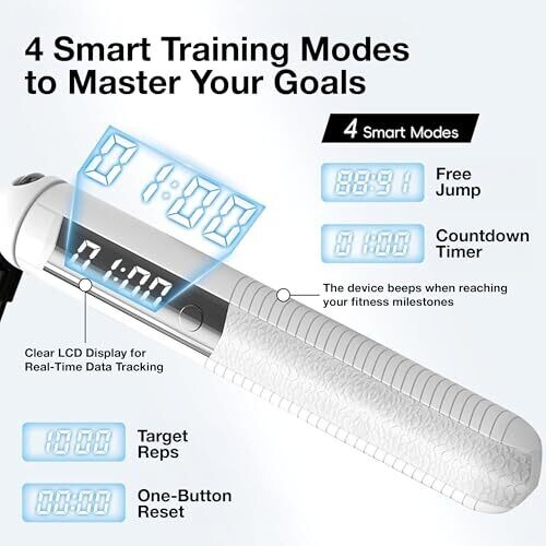 - Four smart training modes keep your workouts varied and engaging—from Free Jump to Countdown, Target Reps, and One-Button Reset—so you can train smarter, not harder.