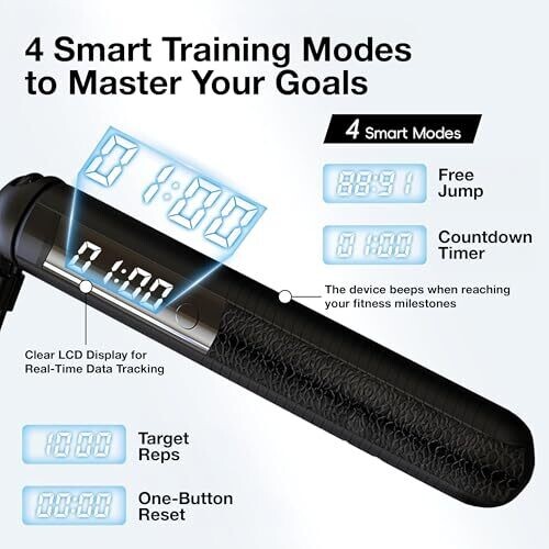 - Four smart training modes—Free Jump, Countdown, Target Reps, and One-Button Reset—provide versatile options for any fitness level and training goal.