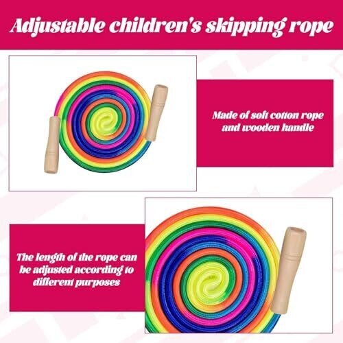 - Enjoy endless active fun with a vibrant rainbow skipping rope that's built for kids to play together, indoors or outdoors.