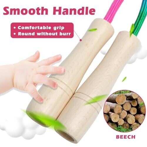 Double Dutch 16Ft Rainbow Jump Rope with Wooden Handles for Groups