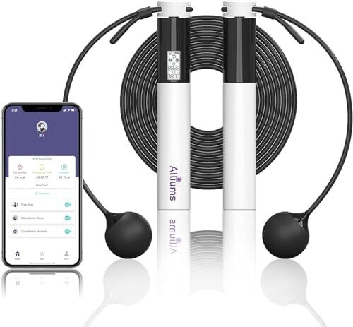 - ALLIUMS Smart Jump Rope with APP Data Analysis, Bluetooth connectivity, and adjustable rope length for flexible training at the gym, CrossFit sessions, and outdoor workouts.