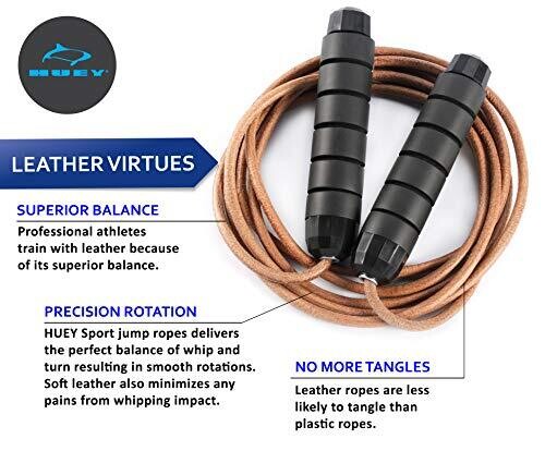 HUEY Leather Jump Rope: Speed, Quiet Turns, Adjustable Length