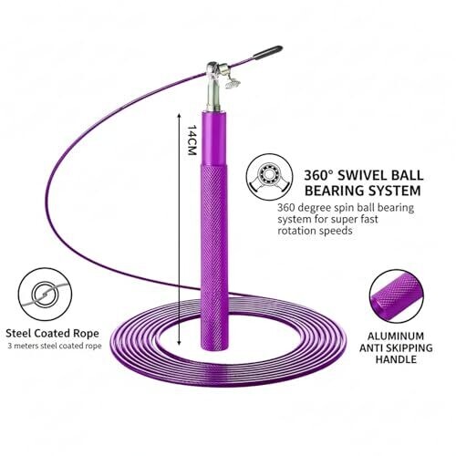 - 360° swivel ball bearing system ensures tangle-free operation and consistent double unders.