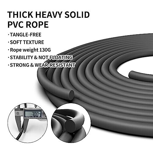 • Extra-thick 7 mm PVC rope with a 3 m length offers smooth rotation and easy length adjustment by threading through hollow weighted bars inside the 13 cm handles.